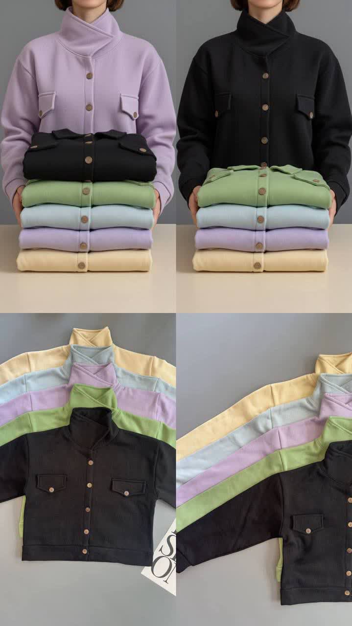 کراپ کت جلو دکمه جیب دار(پک 6 عددی)